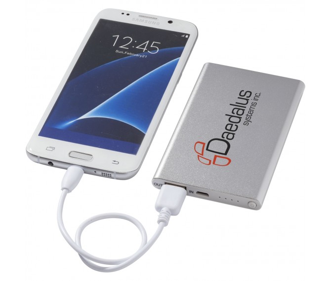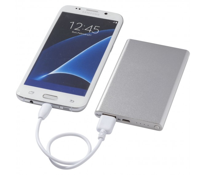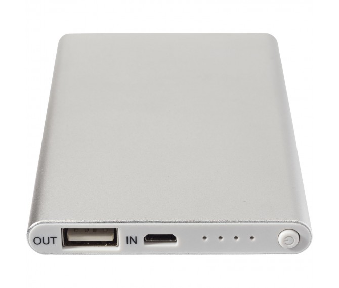 Deze dunne lichtgewicht powerbank heeft een capaciteit van 4000 mAh. Met LED-lampjes voor indicatie van oplaadvoortgang en niveau van de resterende energie. Input 5V/1A, output 5V/1A. Compleet met USB-A naar Type-C oplaadkabel en geleverd in een witte geschenkverpakking.