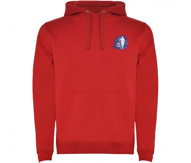 Tweekleurige hoodie met dubbele stof, contrasterend verstelbaar trekkoord, versterkte bedekte naden in de kraag en kangoeroezak. 1x1 elastaan rib in manchetten en tailleband. Verwijderbaar etiket. Het model is 185 cm en draagt maat M.