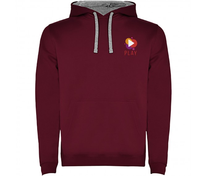 Tweekleurige hoodie met dubbele stof, contrasterend verstelbaar trekkoord, versterkte bedekte naden in de kraag en kangoeroezak. 1x1 elastaan rib in manchetten en tailleband. Verwijderbaar etiket. Het model is 185 cm en draagt maat M.