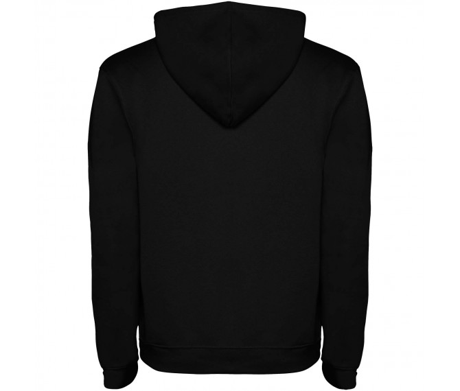 Tweekleurige hoodie met dubbele stof. Versterkte bedekte naden in de kraag en kangoeroezak. 1x1 elastaan rib in manchetten en tailleband. Verwijderbaar etiket. Het model is 120 cm en draagt maat 5/6.