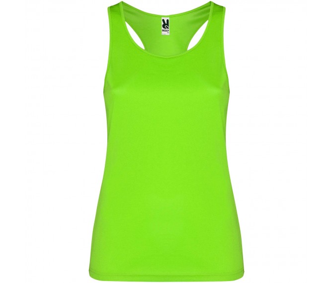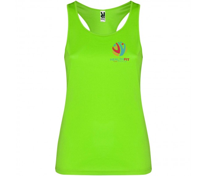 Technische, ademende, gemakkelijk te wassen en te drogen stof. Geribde armsgaten en halslijn. Racerback en zijnaden. Verwijderbaar label.