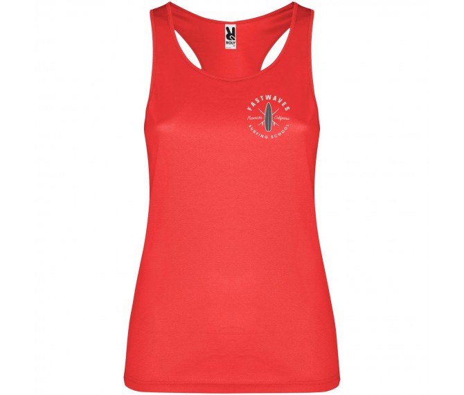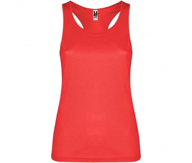 Technische, ademende, gemakkelijk te wassen en te drogen stof. Geribde armsgaten en halslijn. Racerback en zijnaden. Verwijderbaar label.