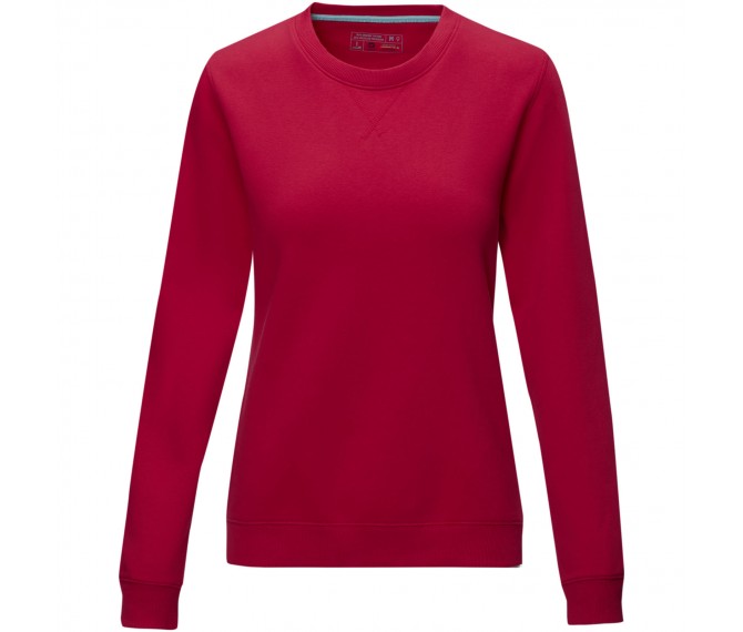 De Jasper organic gerecyclede crewneck sweater voor dames - een samensmelting van stijl en duurzaamheid. Deze sweater combineert eco-bewuste mode met comfort, met een platte gebreide rib v-insert middenvoor. De zachte geborstelde binnenkant zorgt voor een knus gevoel. Gemaakt van een 280 g/m² mix van biologisch katoen en gerecycled polyester. Deze sweater is ontworpen met een getailleerde vorm voor een vrouwelijke look.