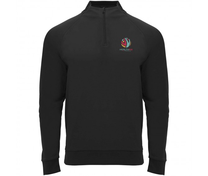 Technische stof. Raglanmouwen. Fleece aan de binnenkant. Kraag met halve rits en bijpassende verstevigde bedekte naden. 1x1 rib in kraag, manchetten en zoom. Verwijderbaar label. Sweatshirt passend bij Neapolis broek.