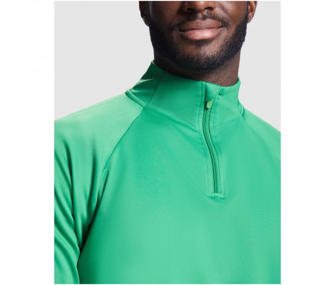Technische stof. Raglanmouwen. Fleece aan de binnenkant. Kraag met halve rits en bijpassende verstevigde bedekte naden. 1x1 rib in kraag, manchetten en zoom. Verwijderbaar label. Sweatshirt passend bij Neapolis broek.