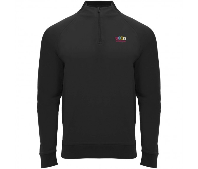 Technische stof. Raglanmouwen. Fleece aan de binnenkant. Kraag met halve rits en bijpassende verstevigde bedekte naden. 1x1 rib in kraag, manchetten en zoom. Verwijderbaar label. Sweatshirt passend bij Neapolis broek.