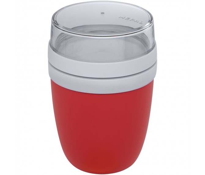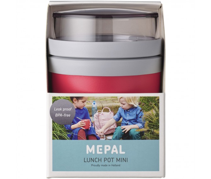 Lunchpot met twee verschillende vakken om de verschillende ingrediënten gescheiden te houden. Beide vakken hebben een aparte deksel en blijven daarom schoon. De inhoud van de bovenste transparante box is 200 ml, wat betekent dat het ongeveer 75 gram vast voedsel kan bevatten. De capaciteit van de onderste box bedraagt 500 ml. Gemaakt van duurzaam materiaal en kan worden gebruikt in de vriezer, de magnetron (verwijder het deksel) en vaatwasser. De bovenste transparante box mag niet in de magnetron worden gebruikt. Lekvrij. BPA-vrij. 2 jaar Mepal garantie.
