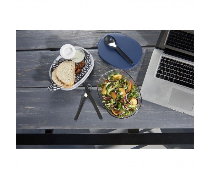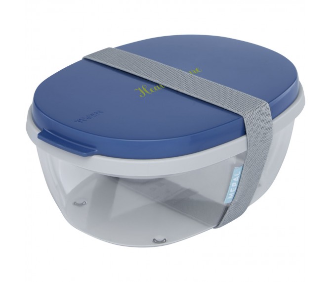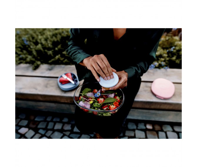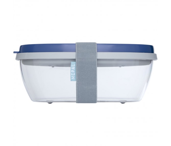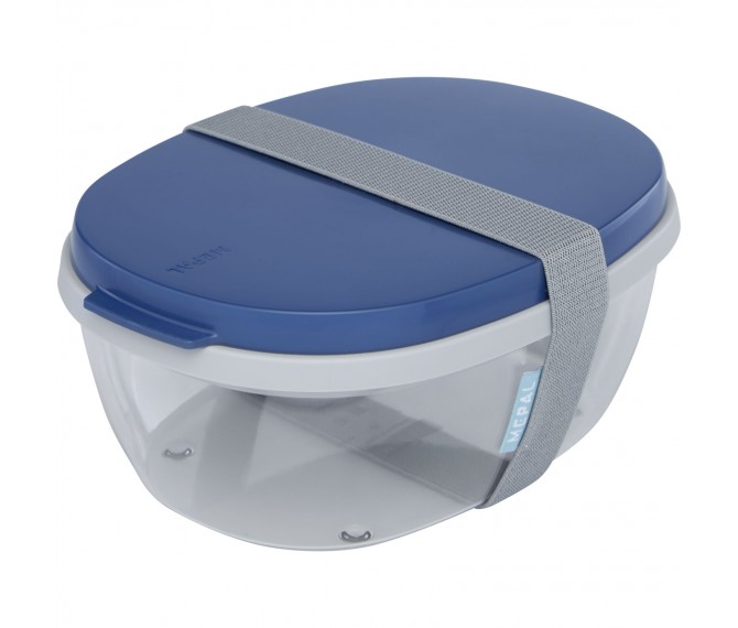 Saladebox met groot doorzichtig compartiment van 1300 ml dat groot genoeg is om de salade te mengen voor het eten. Het bovenste compartiment biedt ruimte voor brood of bestek. Inclusief een klein compartiment voor dressing of noten. Onbreekbaar en kan in de vaatwasser. Wordt geleverd met een elastische bandsluiting. BPA-vrij. 2 jaar Mepal garantie.