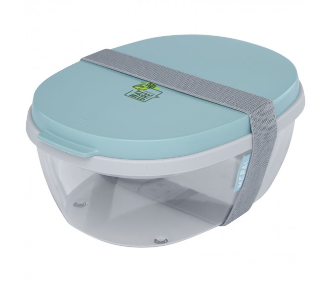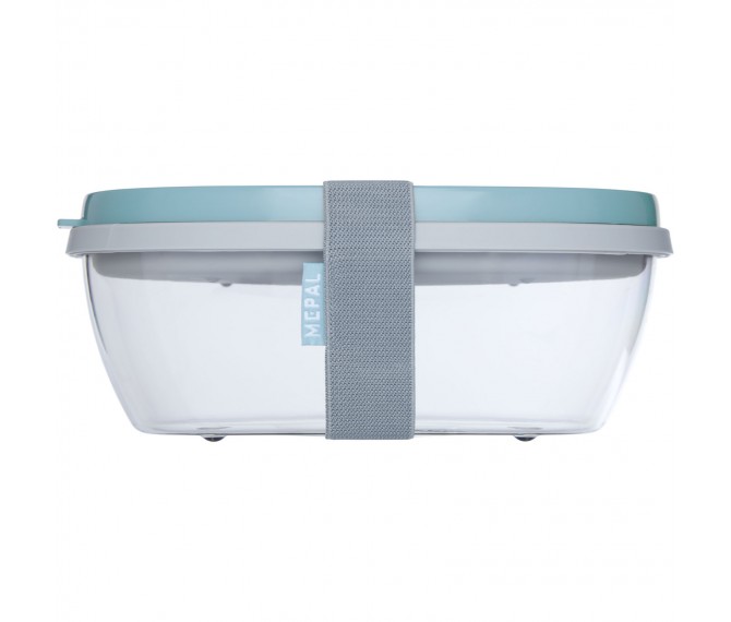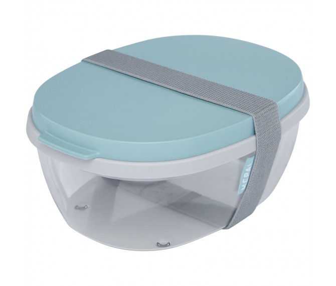Saladebox met groot doorzichtig compartiment van 1300 ml dat groot genoeg is om de salade te mengen voor het eten. Het bovenste compartiment biedt ruimte voor brood of bestek. Inclusief een klein compartiment voor dressing of noten. Onbreekbaar en kan in de vaatwasser. Wordt geleverd met een elastische bandsluiting. BPA-vrij. 2 jaar Mepal garantie.