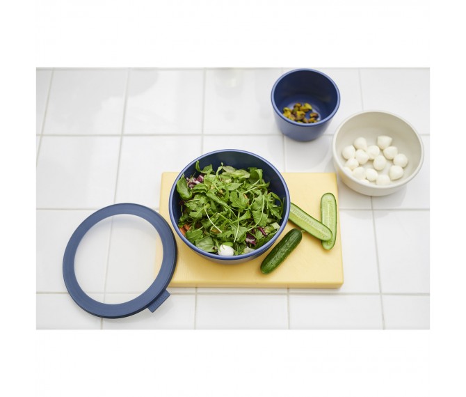 De kom van Cirqula met een inhoud van 1250 ml is perfect voor het bewaren of meenemen van grote porties soep, vlees of maaltijdsalades. Bewaar voedsel in de kom in de koelkast of vriezer, warm het op in de magnetron (het deksel moet worden verwijderd) en serveer je maaltijd in de kom (direct) op tafel. De Cirqula multikom van Mepal is gemaakt van onbreekbaar materiaal. Het transparante venster op het deksel zorgt ervoor dat de inhoud duidelijk zichtbaar is. Het innovatieve, flexibele deksel is luchtdicht en lekvrij. Dit houdt voedsel langer vers en maakt het gemakkelijk om voedsel mee te nemen. De multikommen zijn praktisch en gemakkelijk op te bergen, want u kunt ze op elkaar zetten en opbergen. BPA-vrij. Maximaal 110 graden Celsius. Geschikt voor koelkast, vriezer, magnetron en vaatwasser. 2 jaar Mepal garantie.