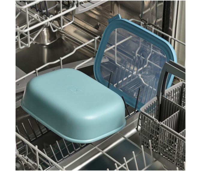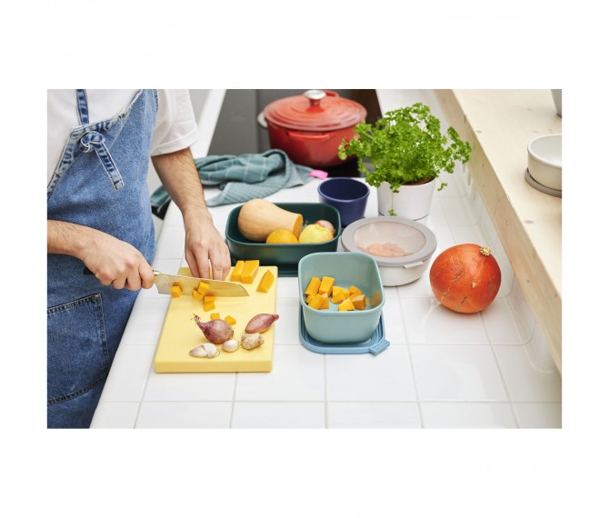 De rechthoekige kom van Cirqula met een inhoud van 1500 ml is perfect voor het bewaren of meenemen van grote porties soep, vlees of maaltijdsalades. Bewaar voedsel in de kom in de koelkast of vriezer, warm het op in de magnetron (het deksel moet worden verwijderd) en serveer uw maaltijd (direct) in de kom op tafel. Het transparante venster op het deksel zorgt ervoor dat de inhoud duidelijk zichtbaar is. Het innovatieve, flexibele deksel is luchtdicht en lekvrij. Dit houdt voedsel langer vers en maakt het gemakkelijk om voedsel mee te nemen. BPA-vrij. Maximaal 110 graden Celsius. Geschikt voor koelkast, vriezer, magnetron en vaatwasser. 2 jaar Mepal garantie.