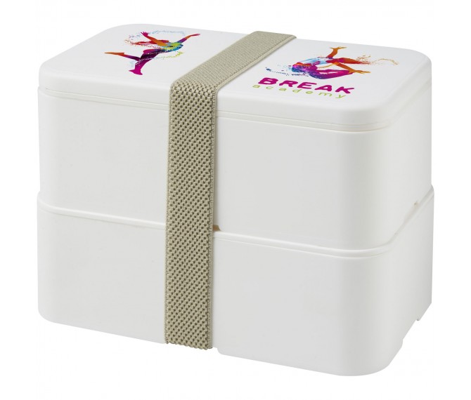 Ga voor groot met deze MIYO dubbellaagse lunchtrommel! Met een of twee lagen met een capaciteit van 700 ml is er voldoende ruimte voor sandwiches, fruit, salades en nog veel meer, en het wordt allemaal op zijn plaats gehouden met een band van gerecycled PET. Er zijn andere kleurencombinaties plus accessoires verkrijgbaar, zoals een spork of binnencompartiment. Neem contact met ons op voor meer informatie. Magnetronbestendig, vaatwasmachinebestendig, BPA-vrij en volledig recyclebaar. Gemaakt in het Verenigd Koninkrijk en verpakt in een gerecyclede PE plastic zak. Personaliseer je MIYO volledig door individuele namen op de deksel te zetten - neem contact met ons op voor meer informatie.