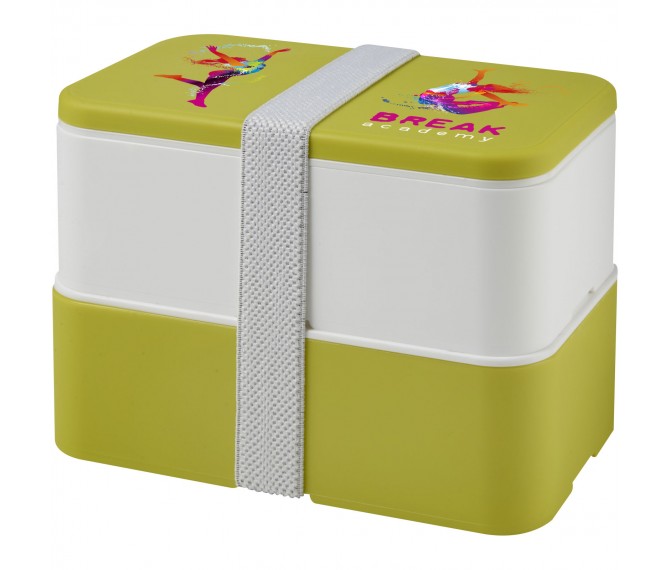Ga voor groot met deze MIYO dubbellaagse lunchtrommel! Met een of twee lagen met een capaciteit van 700 ml is er voldoende ruimte voor sandwiches, fruit, salades en nog veel meer, en het wordt allemaal op zijn plaats gehouden met een band van gerecycled PET. Er zijn andere kleurencombinaties plus accessoires verkrijgbaar, zoals een spork of binnencompartiment. Neem contact met ons op voor meer informatie. Magnetronbestendig, vaatwasmachinebestendig, BPA-vrij en volledig recyclebaar. Gemaakt in het Verenigd Koninkrijk en verpakt in een gerecyclede PE plastic zak. Personaliseer je MIYO volledig door individuele namen op de deksel te zetten - neem contact met ons op voor meer informatie.