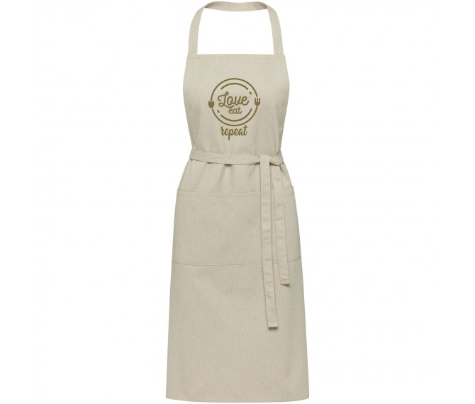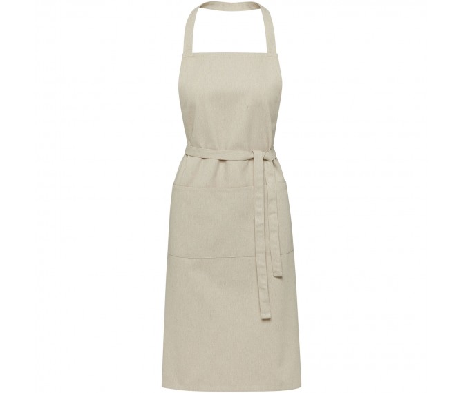 Het Shara schort is gemaakt van 240 g/m2, 70% gerecycled katoen en 30% gerecycled polyester, waardoor het dik en stevig is en comfortabel om te dragen. Het beschikt over 2 aangrenzende zakken (elk 22 x 20 cm) en een striksluiting van 1 meter. Het schort bevat Cyclo® gerecyclede vezels waarbij voorgesorteerd afval wordt gebruikt dat de kleur van het garen bepaalt. Deze vezels verminderen niet alleen de vraag naar nieuwe grondstoffen, maar tonen ook een engagement voor een circulair leven, waarbij ze de essentie belichamen van het verminderen van afval en het bevorderen van een gesloten kringloopsysteem. Elk schort wordt ook geleverd met een Aware™ tracer. Met deze innovatieve functie kunnen gebruikers de oorsprong en de reis van hun artikel volgen via een QR-code, waardoor de transparantie in de toeleveringsketen wordt vergroot en er een sterkere band is tussen het product en het productieproces.
