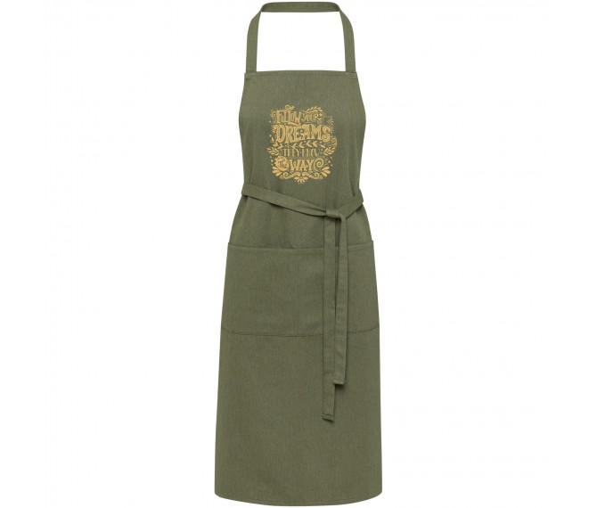 Het Shara schort is gemaakt van 240 g/m2, 70% gerecycled katoen en 30% gerecycled polyester, waardoor het dik en stevig is en comfortabel om te dragen. Het beschikt over 2 aangrenzende zakken (elk 22 x 20 cm) en een striksluiting van 1 meter. Het schort bevat Cyclo® gerecyclede vezels waarbij voorgesorteerd afval wordt gebruikt dat de kleur van het garen bepaalt. Deze vezels verminderen niet alleen de vraag naar nieuwe grondstoffen, maar tonen ook een engagement voor een circulair leven, waarbij ze de essentie belichamen van het verminderen van afval en het bevorderen van een gesloten kringloopsysteem. Elk schort wordt ook geleverd met een Aware™ tracer. Met deze innovatieve functie kunnen gebruikers de oorsprong en de reis van hun artikel volgen via een QR-code, waardoor de transparantie in de toeleveringsketen wordt vergroot en er een sterkere band is tussen het product en het productieproces.